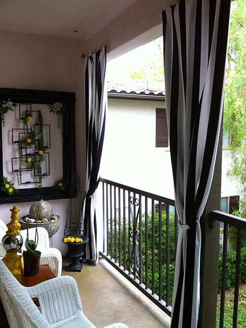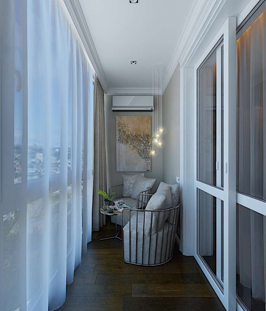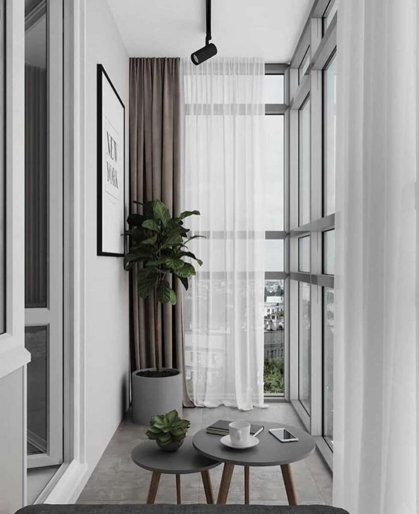 - Для небольшого балкона: лучше всего подойдут рулонные или римские шторы — они экономят пространство и не мешают проходу.